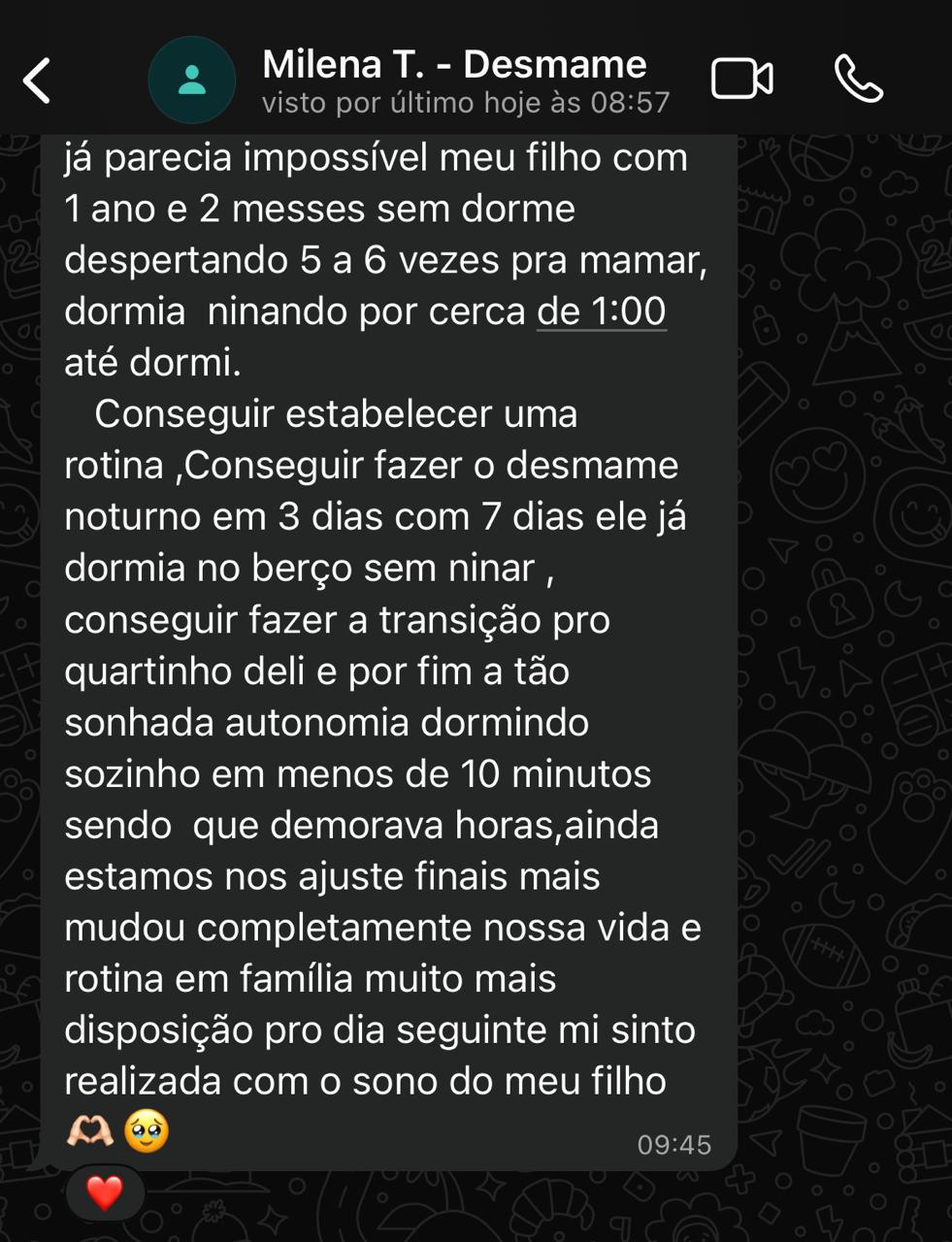 Com vasta experiência atendendo famílias no Brasil e no exterior, transformei meu conhecimento técnico em uma solução prática. Minha missão não é te dar aulas teóricas, é resolver o seu problema e garantir que seu bebê durma a noite toda.